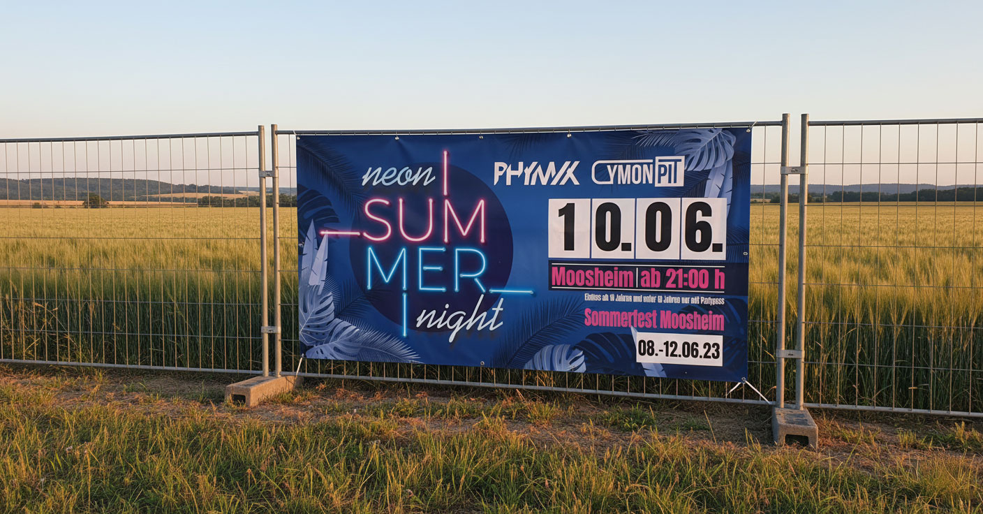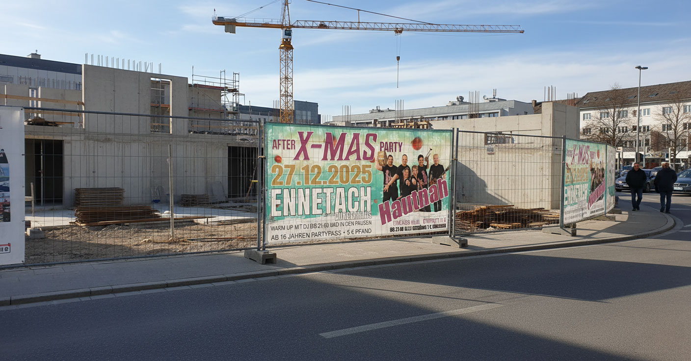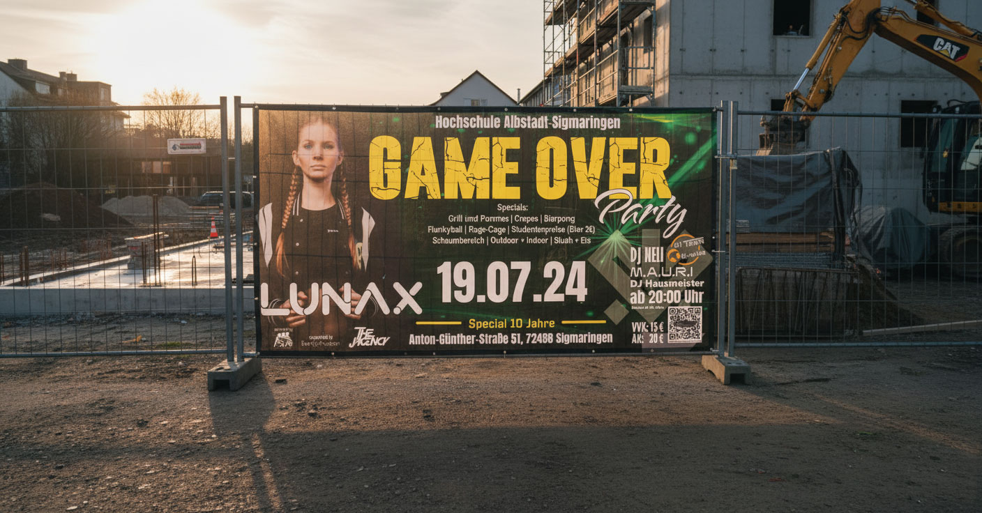 Ob Event, Messe oder Baustelle – Bannerwerbung von HD Creations sorgt für klare Botschaften auf großer Fläche. Durchdachte Gestaltung, präzise Typografie und starke Farbwirkung machen jedes Banner zum Blickfang – robust, wetterfest und auf den Punkt.