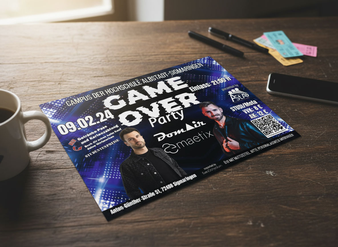 Flyer und Plakate, die wirken – klar gestaltet, prägnant formuliert und visuell auf den Punkt. Ob Werbung, Event oder Kampagne: Design, das auffällt, ohne laut zu sein.
